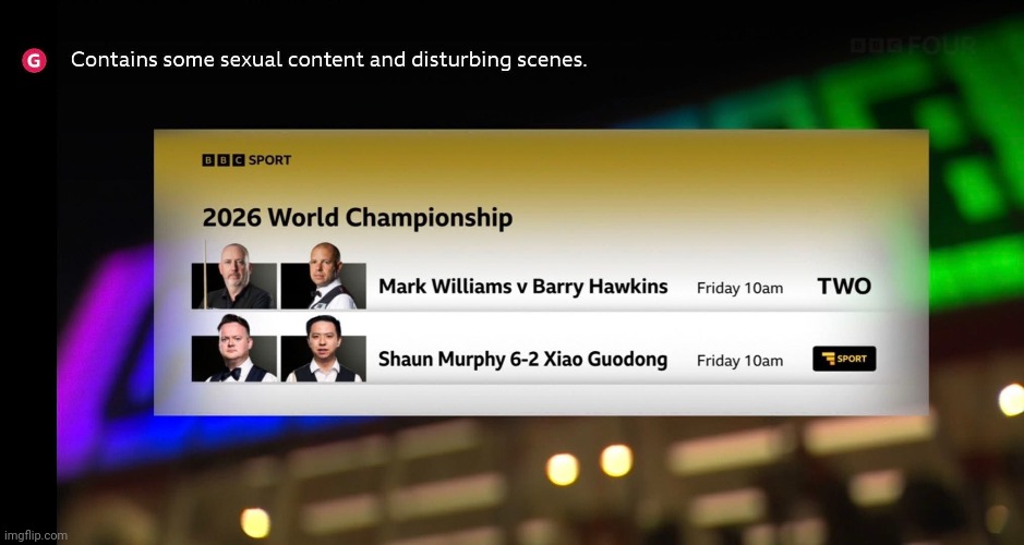 Reply To: Snooker Thread 2020 and beyondHome › Forums › General Sports › Snooker Thread 2020 and beyond › Reply To: Snooker Thread 2020 and beyond April 24, 2026 at 15:12 #1764633 Cork All StarParticipantTotal Posts 11733The action from the Crucible is set to become even more spicy:from Imgflip Meme Generator