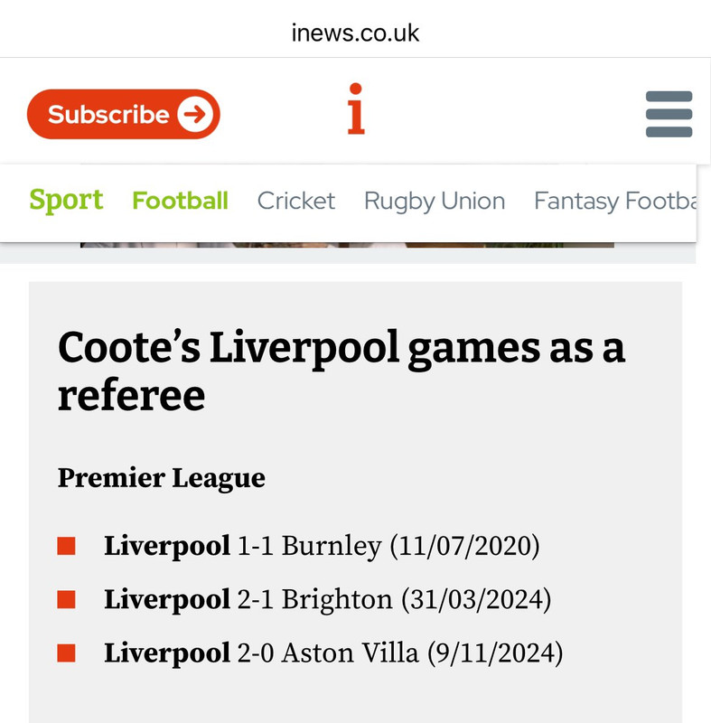 Maybe it was his woeful performances but seems strange all this has blown up now after not given Villa a couple of potential penalty’s against Liverpool at the weekend. Was someone banking on Liverpool dropping points and Coote let them down..