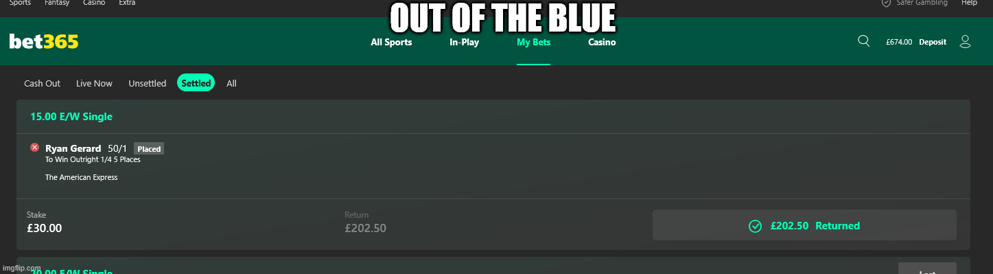 A good e/w although I forgot I’d placed it till later on Saturday.Kim started about an hour ago Jac, he’s played 4 holes and is still