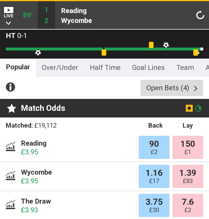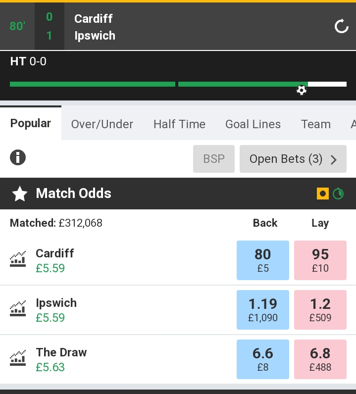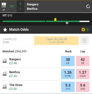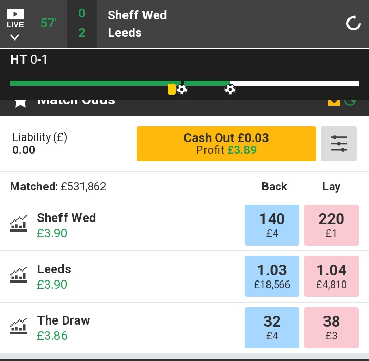 liability £33.56I put in 4.3 earlier on but since the line ups were made its gone north. I’ll keep it in play and see if it gets matched