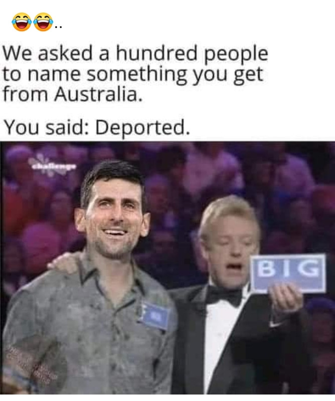 It's the "Millwall FC" of Point broadcasts: "No One Likes Us - We Don't Care"January 9, 2022 at 08:38 #1577218According to him/his lawyers he hasn’t broken any rules. The country’s tennis authorities invited him to the country to compete stipulating that he would be allowed in as he was exempt from having the vaccine. Whether the paperwork was incorrectly completed by Novak’s team, they have misinterpreted the rules or whether the aussies are just making an example of him, no-one knows at present. At least he has a team around him to get through this ordeal.