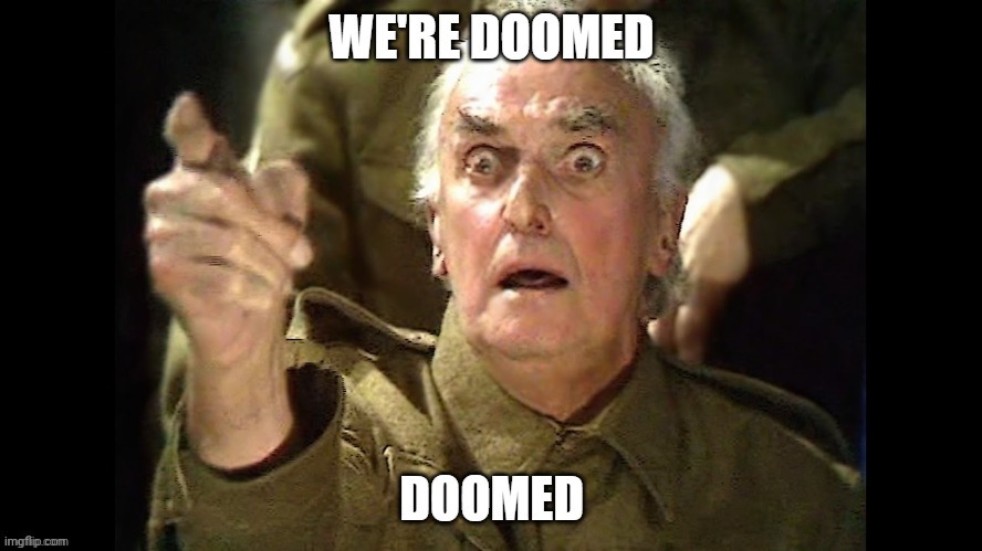 We’re all doomed…Home › Forums › Lounge › We’re all doomed…This topic has 3 replies, 4 voices, and was last updated 19 hours, 13 minutes ago by value31.Viewing 4 posts - 1 through 4 (of 4 total)AuthorPosts January 27, 2026 at 16:58 #1752176 Cork All StarParticipantTotal Posts 10982https://www.reuters.com/world/china/atomic-scientists-set-doomsday-clock-closer-midnight-than-ever-2026-01-27/from Imgflip Meme Generator January 27, 2026 at 17:01 #1752177 GladiateurParticipantTotal Posts 5870It’s all Corbyn’s fault. January 27, 2026 at 20:21 #1752192 Richard88ParticipantTotal Posts 3373Who do you think you are kidding Mr Putin? January 28, 2026 at 11:34 #1752224 value31ParticipantTotal Posts 112The reality is that if the USA impeach Trump (the only danger to world peace) then the doomsday clock would go backwards.AuthorPostsViewing 4 posts - 1 through 4 (of 4 total)You must be logged in to reply to this topic.Log In Username: Password: Keep me signed inLog In